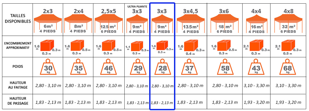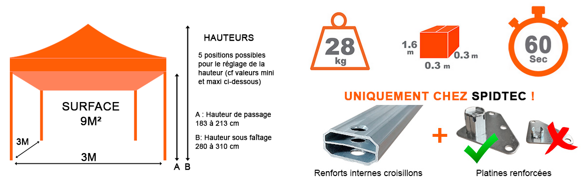 CARACTÉRISTIQUES TENTE PRO 40 3M X 3M